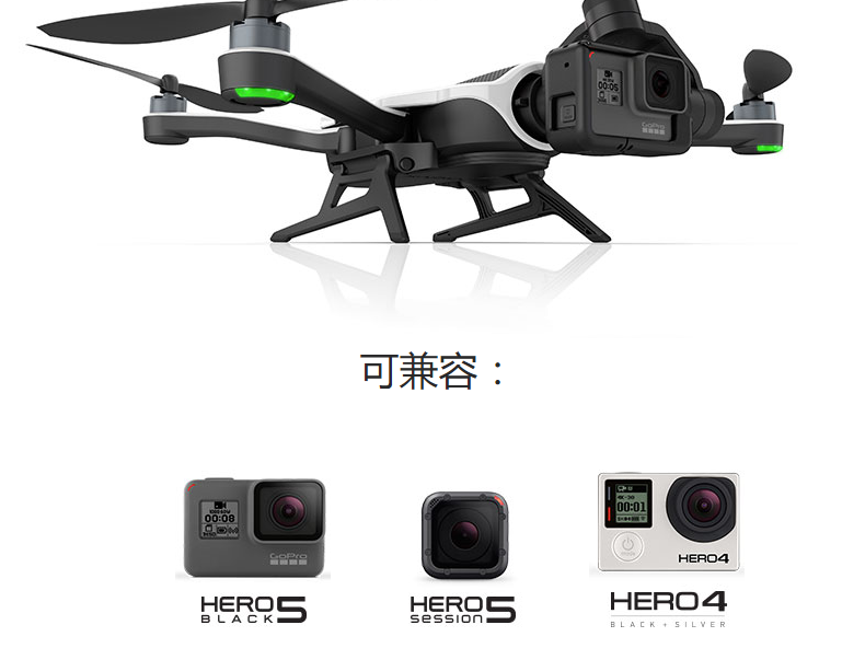 GoPro沒有像當前無人機廠商提供一體化的解決方案,而是將無人機和攝像頭拆開了賣,而攝像頭兼容的是自家剛剛發(fā)布的Hero 5 Black、Hero 5 Session和Hero 4。